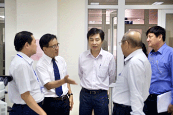 Sau bài giới thiệu về Viện của PGS.TS. Hồ Văn Hoàng, đoàn công tác đã lần lượt đi thăm quan một số các labo chuyên môn của Viện như labo Nuôi cấy - Miễn dịch, labo Vi sinh-Huyết thanh học, labo Sinh học phân tử … và trực tiếp xem các kỹ thuật viên vận hành các phương tiện hiện đại nhất của khu vực miền Trung & Tây Nguyên.