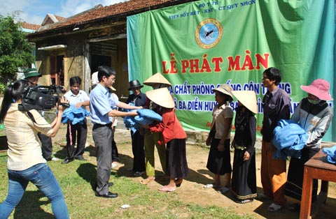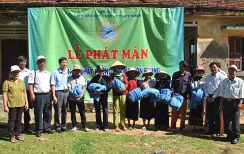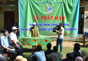 Nhằm tiếp tục tăng cường kiểm soát hội chứng da dày sừng bàn tay, bàn chân tại huyện Ba Tơ, tỉnh Quảng Ngãi. Thực hiện sự chỉ đạo của Bộ Y tế, Lãnh đạo Viện Sốt rét-KST-CT Quy Nhơn đã cử đoàn công tác đến tổ chức phát 1.000 màn tẩm hóa chất diệt côn trùng cho người dân xã Ba Điền, huyện Ba Tơ.