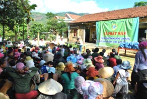 Ông Đinh Văn Bút phát biểu cám ơn tại buổi lễ | Người dân xã Ba Điền đến tham dự buổi lễ và nhận màn |