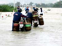 Đường giao thông đi về các xã thuộc huyện Tuy Phước, Phù Cát bị ngập sâu từ 1-1,5 mét (Ảnh lấy từ nguồn : www.thanhnien.com.vn) |