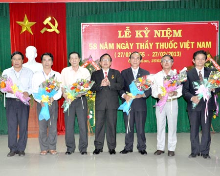TS. TTND. Nguyễn Văn Chương-Việntrưởng tặng hoa chúc mừng các thầy thuốc ưu tú của Viện |
