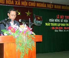 Đồng chí Bí thư Đoàn Đinh Việt Hùng đọc diễn văn ôn lại truyền thống 79 năm ngày thành lập Đoàn thanh niên cộng sản Hồ Chí Minh |