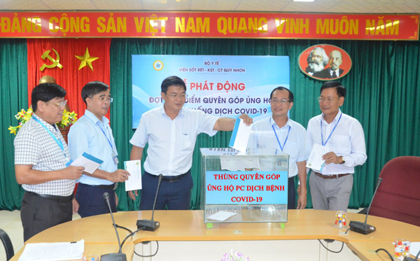 Đại dịch Covid-19 đang diễn biến hết sức phức tạp trong cộng đồng, hướng ứng Thư kêu gọi của Ủy ban MTTQ Việt Nam tỉnh Bình Định, ngày 22/6/2021, Viện Sốt rét-KST-CT Quy Nhơn tổ chức Lễ phát động đợt cao điểm quyên góp ủng hộ phòng, chống dịch bệnh COVID-19 với thông điệp lan tỏa những tấm lòng vì cộng đồng cùng chung tay ủng hộ phòng, chống dịch bệnh COVID-19.