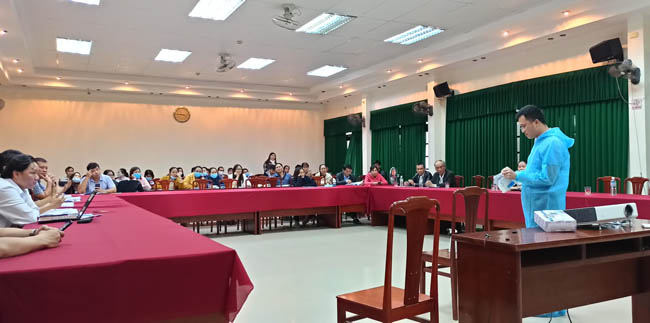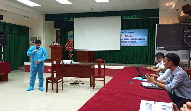 Tại buổi tập huấn, các báo cáo viên của Viện Sốt rét-KST-CT Quy Nhơn và Trung tâm Kiểm soát bệnh tật tỉnh Bình Định đã chuyển tải đến học viên một số thông tin về các nội dung Hướng dẫn công tác truyền thông về dịch viêm đường hô hấp cấp do chủng mới của virus corona (COVID-19) trong tình hình diễn biến mới của dịch bệnh COVID-19. Đồng thời, các học viên cũng được thực hành các thao tác như: Phân luồng, phân tuyến bệnh nhân nghi nhiễm SARS-CoV-2 đến thăm, khám tại Phòng khám Viện, thực hành thao tác mặc đồ bảo hộ cá nhân phòng chống dịch COVID-19, thực hành thu thập, đóng gói,bảo quản và vận chuyển mẫu bệnh phẩm nghi nhiễm SARS-CoV-2 và các mẫu bệnh phẩm nghi nhiễm virus nguy hiểm khác khác.