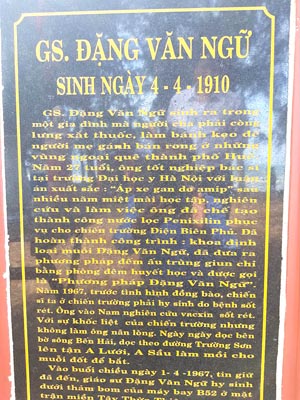 Tượng cố GS.BS.AHLS Đặng Văn Ngữ và bia ghi nhận cống hiến của Thầy