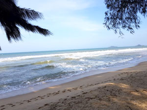 an tọa nhìn ra bờ biển phủ đầy phi lao, cát trắng cùng biển rộng bao la, dập dờn sóng vỗ