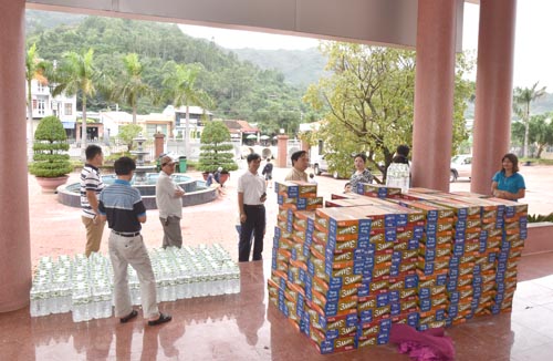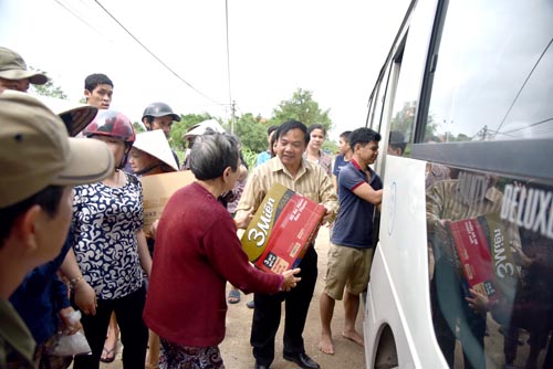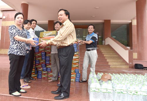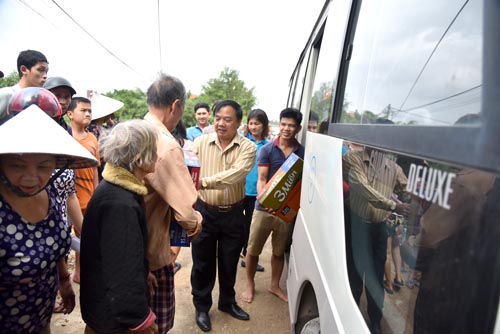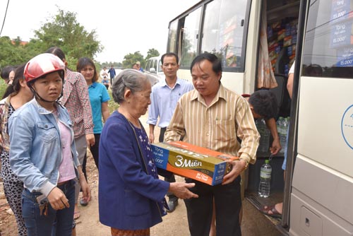 PGS.TS Nguyễn Văn Chương-Viện trưởng trao xuất quà cho Ủy ban mặt trận Tổ quốc tỉnh Bình Định-nơi tiếp nhận cứu trợ bảo lũ |