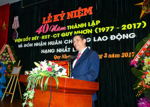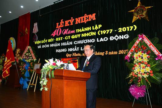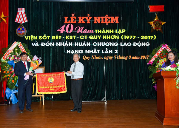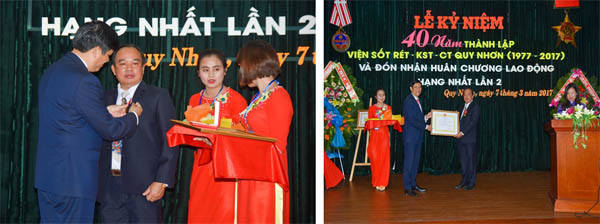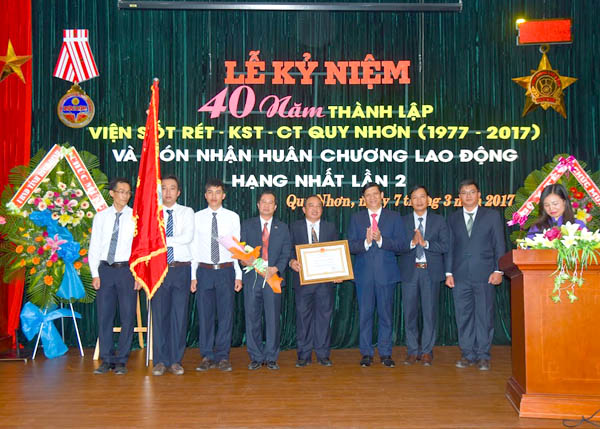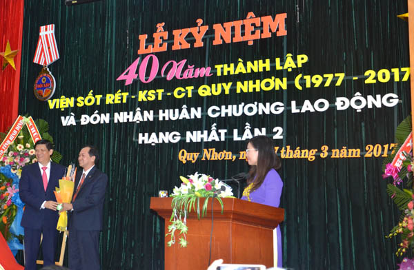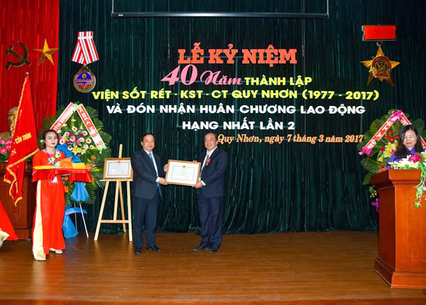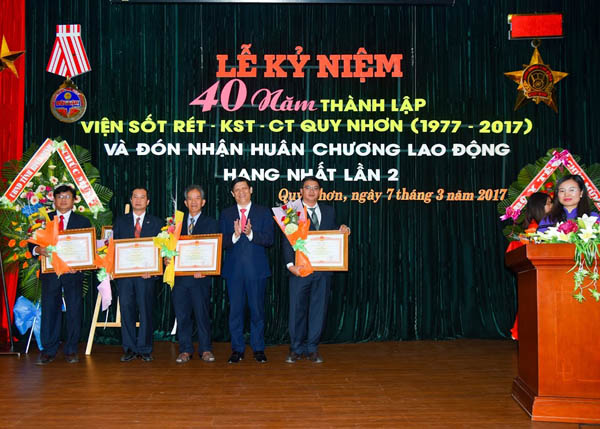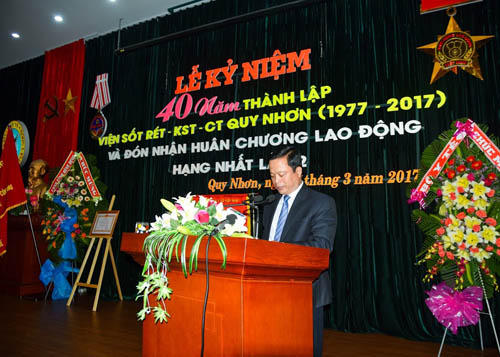 Phát biểu tại buổi Lễ GS.TS Nguyễn Thanh Long, Thứ trưởng Bộ Y tế; Phó Chủ tịch Ủy ban Nhân dân tỉnh Bình Định Nguyễn Tuấn Thanh cùng các Đại biểu khác đều đánh giá rất cao về bề dày thành tích và sự phát triển của Viện; Viện xứng tầm một đơn vị Anh hùng của thời kỳ đổi mới và luôn đi đầu trong tất cả các lĩnh vực: nghiên cứu khoa học, đào tạo, ứng dụng thành tựu khoa học trong công tác khám và chữa bệnh; tổ chức nhiều phong trào thi đua yêu nước; xây dựng mối đoàn kết thật sự bền vững trong Đảng, trong đơn vị. Đây là những điểm sáng nhiều đơn vị cần học tập noi theo.Trong buổi lễ trang trọng này, tập thể cán bộ viên chức của Viện được Giáo sư Thứ trưởng thay mặt cho Đảng và Nhà nước tặng thưởng Huân chương Lao động hạng Nhất lần II, cờ thi đua của Bộ Y tế; Ông Nguyễn Tuấn Thanh tặng Bằng khen của Ủy ban nhân dân tỉnh Bình Định; 4 cá nhân được vinh danh Thầy thuốc Nhân dân và Thầy thuốc ưu tú; PGS.TS Nguyễn Văn Chương vinh dự được nhận Huân chương Lao động hạng II; một số cá nhân được trao tặng Bằng khen của Thủ tướng Chính phủ và Bằng khen của Tổng Liên đoàn Lao động Việt Nam.