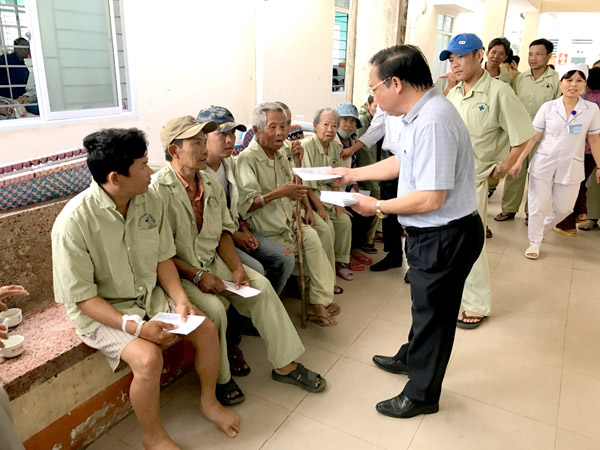 PGS.TS. Nguyễn Văn Chương, Viện trưởng tặng những xuất quà cho các bệnh nhân đang điều trị tại BVĐK tỉnh Bình Định |