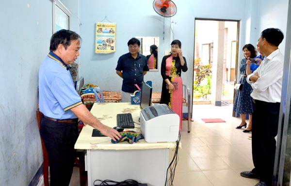 Thầy giáo Trần Gia Tín, Hiệu trưởng đã thay mặt toàn thể giáo viên và các em học sinh cám ơn đoàn Viện |