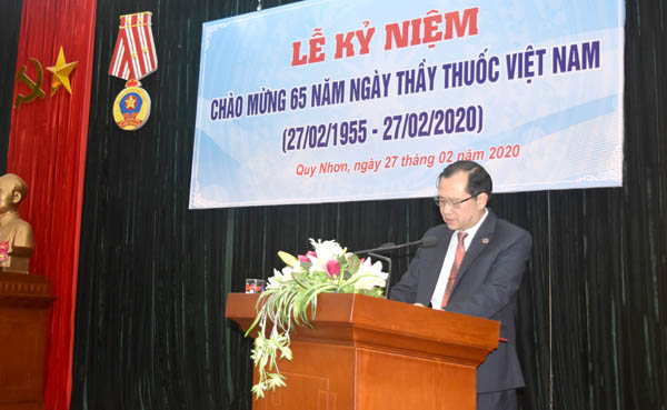 Sau những nghi thức trang trọng dành cho buổi lễ, PGS.TS. Hồ văn Hoàng, Viện trưởng thay mặt Đảng ủy Viện và Lãnh đạo Viện phát biểu khai mạc Lễ Kỷ niệm và đọc thư của Bác Hồ gửi cán bộ viên chức ngành y tế. PGS.TS. Hồ văn Hoàng đã điểm qua những kết quả công tác nổi bật của Viện năm 2019 và kế hoạch hoạt động năm 2020. Viện trưởng đã nhấn mạnh, Viện Sốt rét-KST-CT Quy Nhơn đã bước lên một tầm cao mới khi liên tục nhiều năm liền duy trì được thành tích khống chế dịch bệnh (sốt rét, sốt xuất huyết, các bệnh giun sán) ở khu vực miền Trung-Tây Nguyên, đội ngũ cán bộ khoa học của Viện không ngừng lớn mạnh, cơ sở vật chất của Viện ngày càng được nâng cao cùng nhiều trang thiết bị nghiên cứu hiện đại; Viện Sốt rét-KST-CT Quy Nhơn được Bộ Y tế đánh giá là một trong những đơn vị dẫn đầu của ngành y tế về công tác phát triển các dịch vụ y tế, tăng nguồn ngân sách sự nghiệp và tăng thu nhập cho đội ngũ cán bộ, viên chức và người lao động, những năm qua Viện đã vinh dự đón nhận nhiều phần thưởng cao quý như: Danh hiệu Anh hùng Lao động thời kỳ đổi mới, Huân chương Độc lập hạng Nhì, Ba, Huân chương Lao động hạng Nhất, Nhì, Ba; Cờ thi đua Chính phủ, Bộ Y tế và UBND tỉnh Bình Định, Giải thưởng Hồ Chí Minh và nhiều Bằng khen của Chính phủ, Bộ, UBND tỉnh Bình Định.