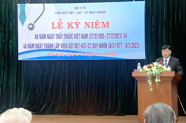Hoà chung với khí thế sôi nổi cán bộ, viên chức ngành y tế cả nước thi đua lập thành tích chào mừng ngày Thầy thuốc Việt Nam 27/02 và học tập và làm theo tấm gương đạo đức Hồ Chí Minh, thực hiện tốt Quy tắc ứng xử trong các đơn vị ngành y tế, Chiều ngày 27/02/2023, Viện Sốt rét-KST-CT Quy Nhơn tổ chức Lễ kỷ niệm 68 năm Ngày Thầy thuốc Việt Nam (27/02/1955-27/02/2023)  và 46 năm Ngày thành lập Viện Sốt rét-KST-CT Quy Nhơn (08/3/1977-08/3/2023).