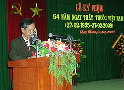 TS. Triệu Nguyên Trung-Viện trưởng Viện Sốt rét- KST-CT Quy Nhơn phát biểu tại buổi Lễ kỷ niệm. |