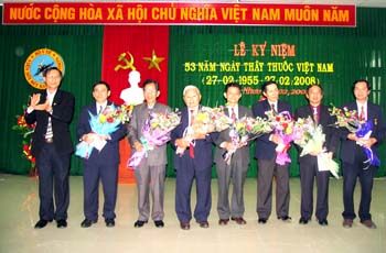 ThS.Lê Ngọc Linh-Bí thư Đảng ủy-Phó Viện trưởng tặng hoa cho 7 cán bộ đạt danh hiệu cao quý : Thầy thuốc nhân dân và Thầy thuốc ưu tú trong những năm qua |