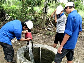 Ở những vùng nông thôn, miền núi chưa có nước máy; giếng nước là nguồn cung cấp nước phục vụ cho ăn, uống và sinh hoạt hàng ngày phổ biến của người dân. Có hai loại giếng nước là giếng khơi và giếng khoan, trong đó giếng khơi khá phổ biến. Sau lũ lụt, hầu hết nước giếng đều bị ô nhiễm nặng, cần phải xử lý mới bảo đảm vệ sinh để sử dụng.