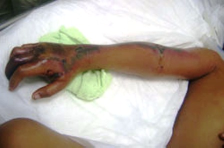 Rắn hổ mèo (Naja siamensis) Nguồn ảnh internet | Cả bàn tay phải bị hoại tử do rắn hổ mèo cắn (Nguồn ảnh internet) |