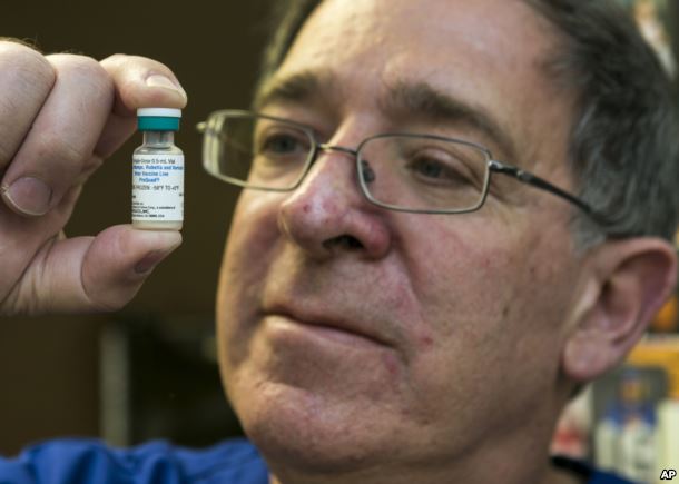 hoặc vaccine MMR tại cơ sở thực hành của mình ở Northridge, California, ngày 29/1/2015