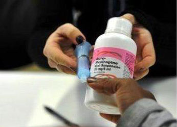 | Một bệnh nhân HIV nhận thuốc tại bệnh viện ở Nam Phi |