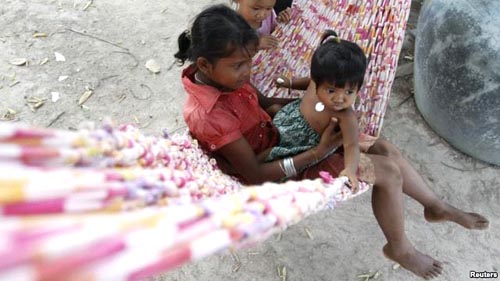 Trẻ em chơi trên võng ở làng Broma tại tỉnh Kratie, Campuchia, 22/1/2012