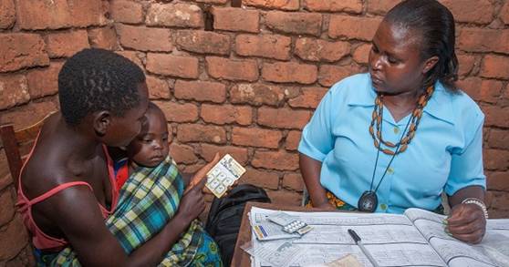 Một nhân viên y tế cộng đồng Frida Kabwango, chẩn đoán và điều trị cho đứa bé 3 tuổi James Mabvuto