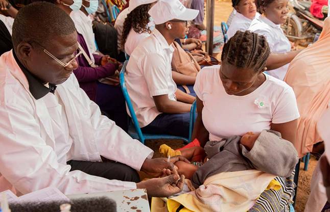 Hình 1. Một trẻ em đang được tiêm vắc-xin sốt rét ở Burkina Faso.