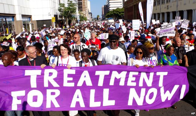 Các nhà hoạt động về dân quyền diễu hành ở Durban, Nam Phi vào lúc bắt đầu Hội nghị thế giới về Aids 21, ngày 18/7/2016