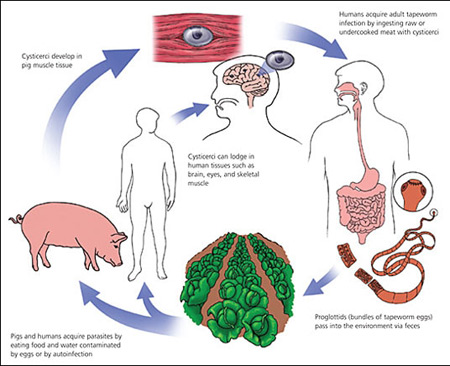 Trên thực tế số bệnh nhân đến khám tại Viện Sốt rét-Ký sinh trùng-Côn trùng Trung ương cho thấy, các bệnh nhân nhiễm sán lợn chủ yếu ở lứa tuổi trưởng thành, rải rác ở tất cả các địa phương, nhất là ở những vùng có phong tục ăn thịt lợn sống, chưa nấu chín, ăn tiết canh, nem chạo hoặc quản lý phân chưa tốt. Sán dây lợn dài từ 2-3mm hoặc hơn, gồm nhiều đốt, có đốt cổ mảnh, có đốt thân trưởng thành, có đốt già. Trong một đốt sán già có thể chứa tới 55.000 trứng, những đốt già ở cuối thường rụng thành từng đoạn 5-6 đốt liền nhau theo phân ra ngoài. Khi nguồn phân này được quản lý không tốt, dễ dàng lây nhiễm vào các nguồn thực phẩm khác, ăn sống không nấu chín dễ lây nhiễm sán.