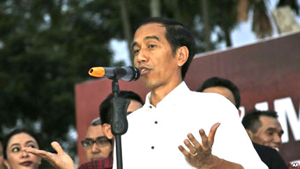| Tổng thống đắc cử Indonesia Joko Widodo nói với người ủng hộ trong nước tại Jakarta. |