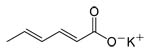 3 | Kali sorbate | C5H7COOK | | - Diệt nấm mốc, nấm men, và nấm trong nhiều loại thực phẩm như pho mát, rượu… - Sử dụng lâu dài sẽ gây ra triệu chứng rối loạn tổng hợp protein, yếu tố tác động gây ung thư. Đối với trẻ em dễ gây ngộ độc và ảnh hưởng đến thần kinh. - Liều dùng: 0,3-3ppm |