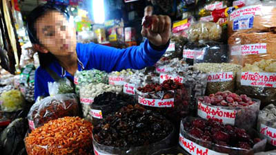 Tại chợ An Đông (Q.5), chợ Bến Thành (Q.1), chợ Bà Chiểu (Q.Bình Thạnh)... các loại trái cây sấy khô, mứt trái cây nói trên được bán tràn ngập và cũng trong tình trạng không nhãn mác, không hạn dùng và không thông tin nhà sản xuất, hầu hết các tiểu thương đều xác nhận đa số là hàng nhập từ Trung Quốc.
