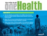 Tại Việt Nam, Chương trình one Health đã triển khai tăng cường cơ chế điều phối Một Sức khoẻ giữa Bộ Y tế, Bộ Nông nghiệp và Phát triển nông thônvà các đối tác quốc tế đã được tổ chức năm 2014. Cục trưởng Cục Y tế dự phòng, Bộ Y tế chủ trì và Cục thú y, Bộ Nông nghiệp và Phát triển nông thôn. Các chủ trì đã nhấn mạnh những thách thức của các bệnh nguy hiểm ở động vật và con người ở trong và ngoài nước, đồng thời lưu ý rằng Việt Nam thuộc một trong số những khu vực tâm điểm dịch bệnh xét trên phạm vi toàn cầu. Trước bối cảnh đó, việc áp dụng phương thức tiếp cận Một sức khỏe để giải quyết nguy cơ dịch bệnh phát sinh trong mối tương tác con người-động vật-môi trường là một đòi hỏi tất yếu. Việt Nam cũng đã cam kết tham gia tích cực vào Chương trình An ninh Sức khỏe Toàn cầu (GHS). Điều này đòi hỏi một cơ chế điều phối Một sức khỏe ở cấp quốc gia có hiệu quả.