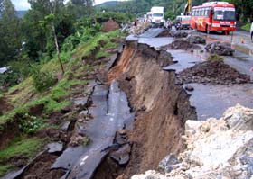 Quốc lộ 1A bị sạt lở đoạn qua tỉnh Phú Yên Ảnh: Duy Thanh | Nhiều điểm giao thông huyện Pác Nặm bị sạt lở nghiêm trọng. (ảnh:24h.com.vn) |