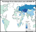 Trong năm 2011 ước tính có khoảng 630.000 ca lao đa kháng thuốc (MDR-TB) trong số 12 triệu ca lao trên toàn thế giới. Trên toàn cầu, 3,7% ca lao mới và 20% các ca được điều trị trước đây ước tính là có MDR-TB, với một sự khác nhau đáng kể trong tần suất của MDR-TB giữa các quốc gia. Lao kháng thuốc rộng khắp ( XDR-TB, được định nghĩa như MDR-TB cộng với sự đề kháng tới bất kỳ fluoroquinolone và bất kỳ thuốc tiêm ưu tiên thứ hai) đã được xác định ở 84 quốc gia trên toàn cầu.