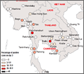 Tỷ lệ bệnh nhân với ký sinh trùng P.falciparum trong máu vào ngày thứ ba sau khi điều trị liệu pháp với một dẫn xuất artemisinin (ACTs) 2006-2010. |