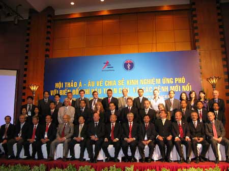 Các đại biểu Việt Nam và quốc tế tại Hội thảo “Chia sẽ kinh nghiệm ứng phó với biến đổi khí hậu toàn cầu và các bệnh mới nổi”, |