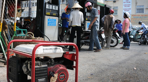 Một cửa hàng xăng dầu trên đường Nguyễn Chí Thanh, Q.5, TP.HCM phải chạy máy phát điện để bơm xăng cho khách hàng vì bị cúp điện vào chiều 31-5 - Ảnh: Minh Đức-tuoitre online |