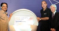 Ông Vilasrao Deshmukh_Bộ trưởng Bộ Khoa học và công nghệ, ông Ghulam Nabi Azad Bộ trưởng phúc lợi và sức khỏe cùng Chủ tịch tập đoàn Ranbaxy_Tsutomu Une đã công bố chính thức một loại thuốc sốt rét mới của Ranbaxy tên thương mại SynriamTM tại New Delhi hôm thứ 4 vừa qua.
