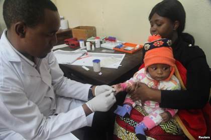 Xét nghiệm máu tìm ký sinh trùng sốt rét cho trẻ em tại một bệnh viện ở Arusha, Tanzania, ngày 11/5/2016