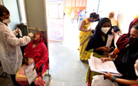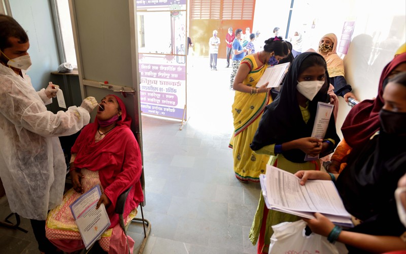Một nhân viên y tế đang xét nghiệm COVID-19 cho một phụ nữ có thai taị một vùng ngoại ô Mumbai, Ấn Độ hồi tháng 4.