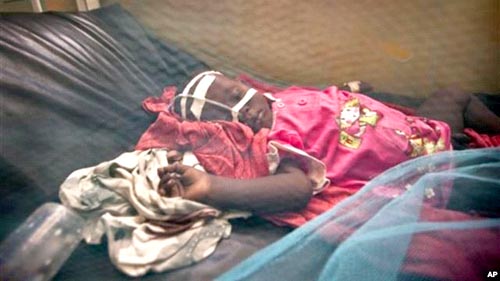 Một đứa trẻ Somali bị viêm màng não lâm sàng nằm trong một khu cách ly của bệnh viện Benadir ở Mogadishu, Somalia Thứ tư 24/4/2013. Các nhà chức trách ở Somalia, một trong những quốc gia có tỷ lệ tiêm chủng thấp nhất thế giới triển khai một loại vaccine ngũ giá chống lại bạch hầu, uốn ván, ho gà, viêm gan B và Haemophilus influenzae type B-chủng vi khuẩn gây viêm màng não và viêm phổi.