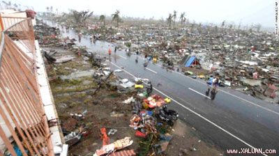 | Đường phố Tacloban, Philippines ngổn ngang sau siêu bão Haiyan (Ảnh: CNN) |