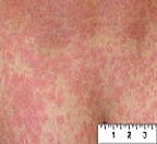 ·Phát ban: Ban đỏ, từng đốm lan tỏa, ban dát sần. Đặc biệt ban mọc đầu tiên ở mặt, sau đó lan ra thân mình (trừ lòng bàn tay, lòng bàn chân).