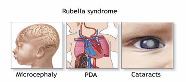 -Một thai phụ mắc bệnh Rubella trong 3 tháng đầu của thai kỳ sẽ dễ bị những tai biến như sẩy thai, thai chết trong tử cung hoặc gây nên những dị dạng cho thai nhi sau khi sinh như: các khuyết tật về tim, đục thủy tinh thể, điếc bẩm sinh, chậm phát triển trí tuệ…