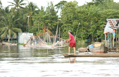 | Một người đàn ông đánh cá trên sông Mê Kông |