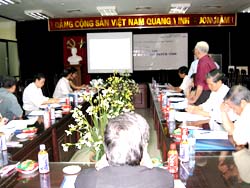 GS.TS. Dương Đình Thiện(đứng)-Nguyên Trưởng Bộ môn Vệ sinh dịch tễ-Trường Đại học Y Hà Nội trình bày mẫu biên soàn tài liệu |