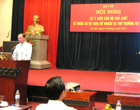 Thực hiện chỉ đạo của Ban Cán sự Đảng Chính phủ về việc đồng ý để Bộ Y tế thực hiện quy trình bổ nhiệm 02 Thứ trưởng, ngày 14/9/2011 Ban Cán sự Đảng Bộ Y tế đã tổ chức Hội nghị lấy ý kiến cán bộ chủ chốt về nhân sự đề nghị bổ nhiệm Thứ trưởng Bộ tế.