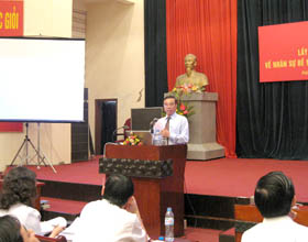 GS.TS. Nguyễn Công Khẩn-Cục trưởng Cục An toàn vệ sinh thực phẩm báo cáo tại Hội nghị | PGS.TS. Nguyễn Thanh Long-Cục trưởng Cục Phòng chống HIV/AIDS báo cáo tại Hội nghị |