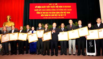 Bộ trưởng Bộ Y tế Nguyễn Quốc Triệu đã tiến hành trao phần thưởng thi đua cho 7 đơn vị được tặng Cờ Thi đua Chính phủ và 43 cá nhân được Nhà nước phong tặng Danh hiệu Thầy thuốc nhân dân. Từ khí thế ra quân đầu Xuân Mậu Tý và kỷ niệm ngày Thầy thuốc Việt Nam lần thứ 53 được Tổng Bí thư quan tâm và trực tiếp chỉ đạo, ngành y tế “Quyết tâm thực hiện tốt nhiệm vụ cao cả được Đảng và Nhà nước giao phó, xây dựng một hệ thống y tế công bằng-hiệu quả và phát triển, đáp ứng tốt nhu cầu bảo vệ, chăm sóc và nâng cao sức khỏe toàn dân”.