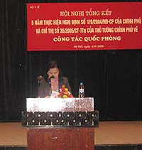 Ngày 5/11/2009 tại Hà Nội, Bộ Y tế đã tổ chức Hội nghị tổng kết 5 năm thực hiện Nghị định số 119/2004/NĐ-CP của của Chính phủ và Chỉ thị số 36/2005/CT-TTg của Thủ tướng Chính phủ về công tác quốc phòng với sự tham dự của Lãnh đạo Bộ Y tế, đại diện Bộ Quốc phòng, các Vụ/Cục chức năng, các cơ quan và đơn vị trực thuộc Bộ Y tế.