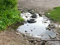 Hình 2: ổ nước đọng ở khu vực nhà dân |